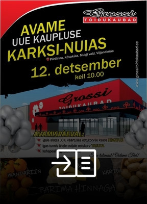 5, 10, 20 ning 30 euro väärtuses kinkekaardid on müügil kõigi Grossi Toidukaubad kaupluste kassades.