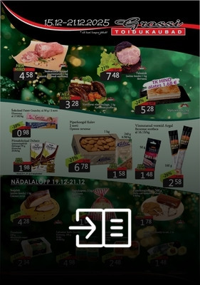 Подарочные сертификаты стоимостью €5, €10, €20 и €30 продаются на кассах всех магазинов Grossi Toidukaubad.